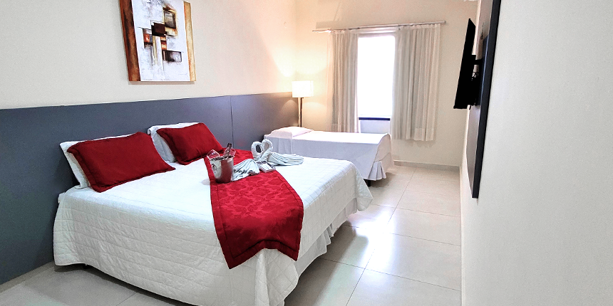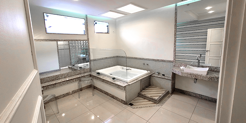 Um ambiente pensado para encantar. Espaçosa, sofisticada e perfeita para momentos marcantes, a Suíte Luxo com Hidromassagem oferece o máximo em conforto e privacidade. Ideal para núpcias, dia da noiva, celebrações ou simplesmente para quem deseja viver uma experiência de puro relaxamento.