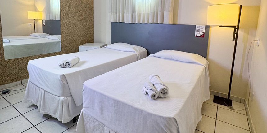A escolha ideal para amigos, colegas de trabalho ou hóspedes que preferem camas separadas. O Quarto Executivo Twin combina comodidade e bem-estar, garantindo uma estadia agradável e prática.