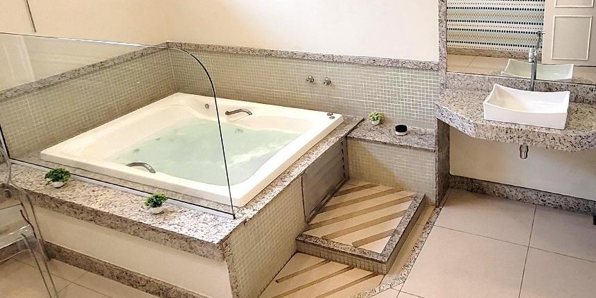 Um ambiente pensado para encantar. Espaçosa, sofisticada e perfeita para momentos marcantes, a Suíte Luxo com Hidromassagem oferece o máximo em conforto e privacidade. Ideal para núpcias, dia da noiva, celebrações ou simplesmente para quem deseja viver uma experiência de puro relaxamento.